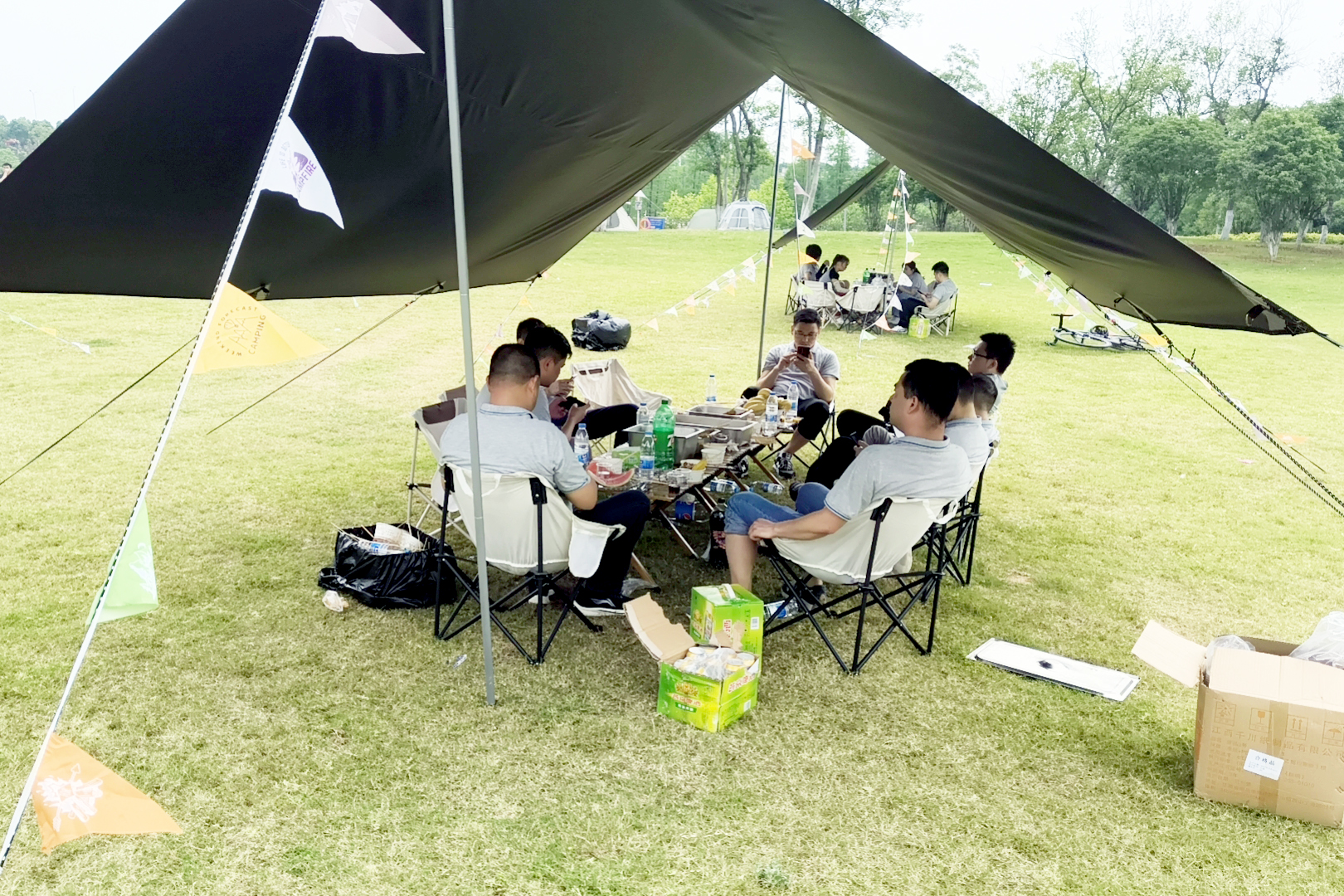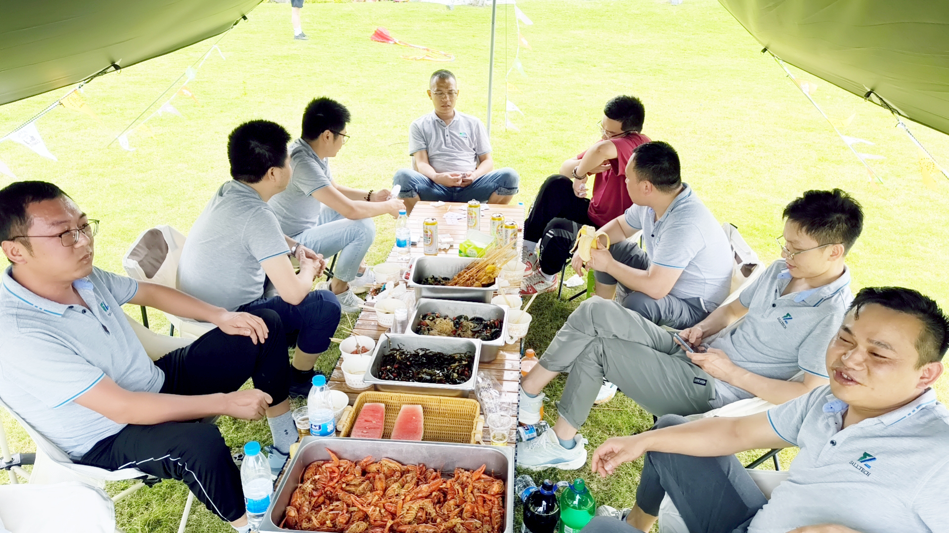 在蓝天白云下,我们展开了一场别开生面的露营烧烤活动。炊烟袅袅,欢声笑语,大家亲手烤制美味的食物,品尝着烤肉的香气,感受着团队情谊的温暖。